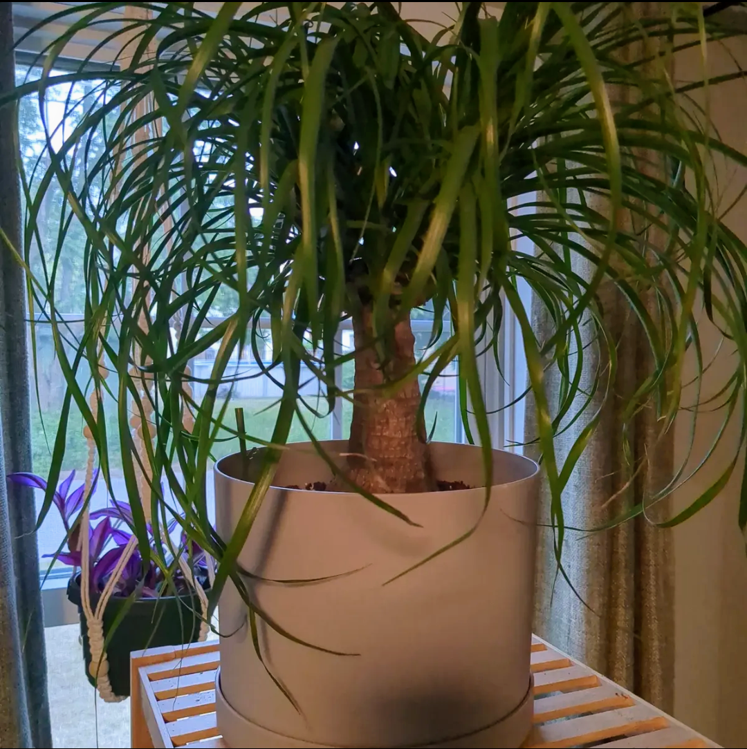 Ponytail palms are slow growers but are easy to care for. They love bright sunlight and only need to be watered every couple of weeks during the growing season. Less water is needed in winter. Ponytail palms are able to store water in the trunk so if you forget to water this plant, it’s not the end of the world. Keep this palm in some sandy potting mix with peat moss and you will have a happy ponytail palm.